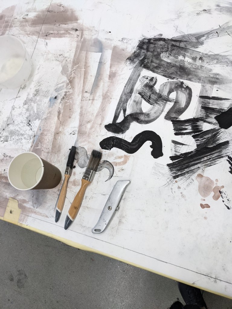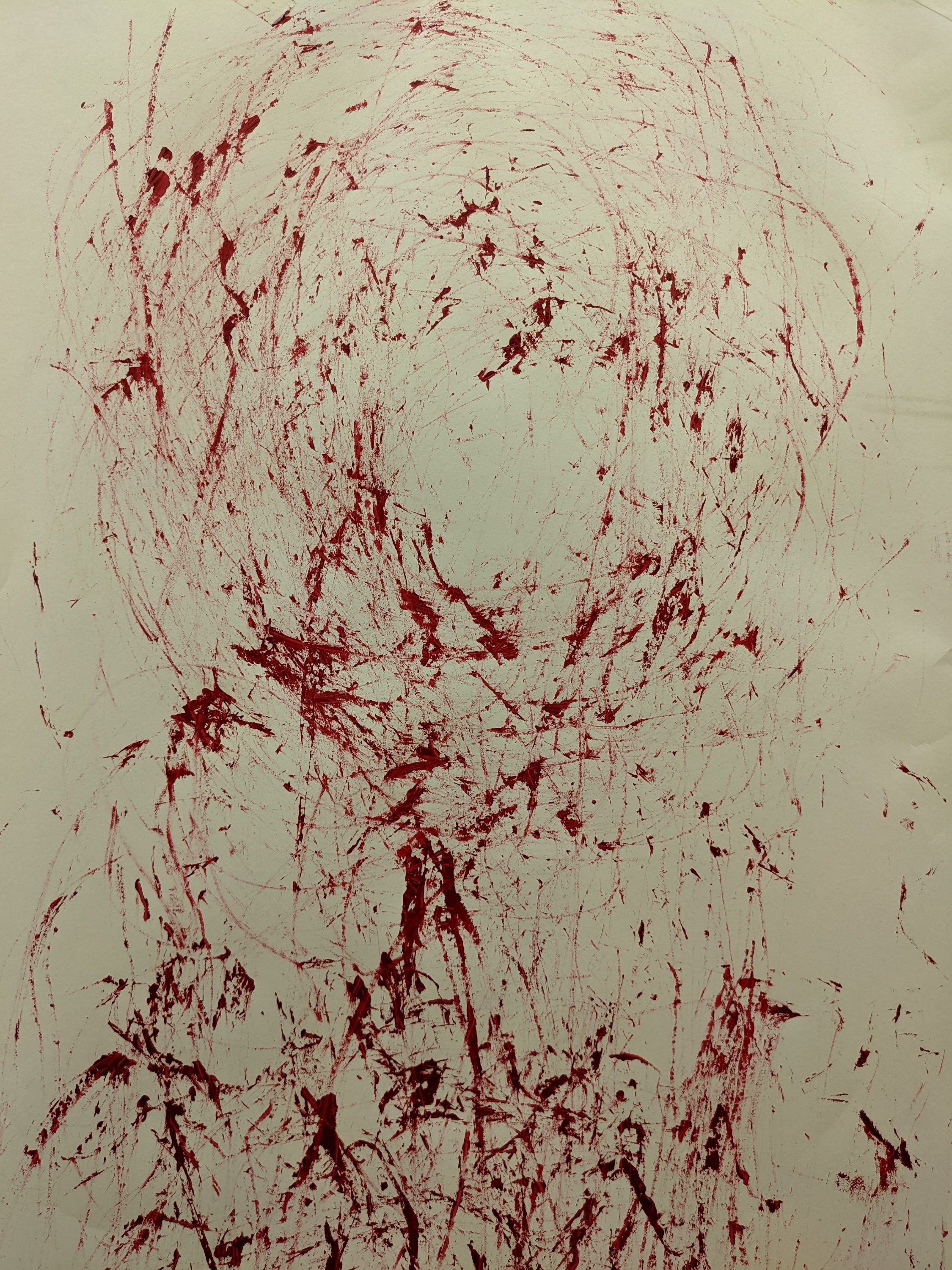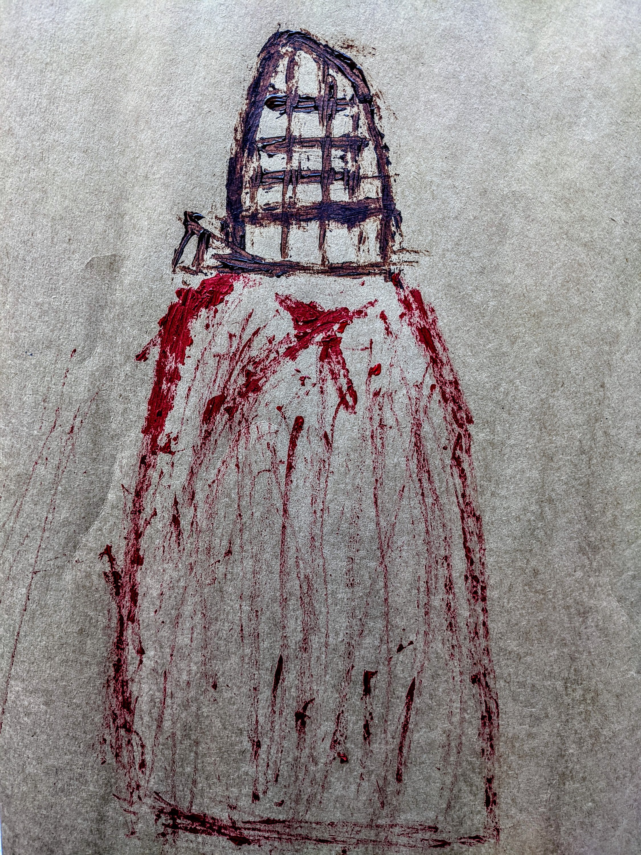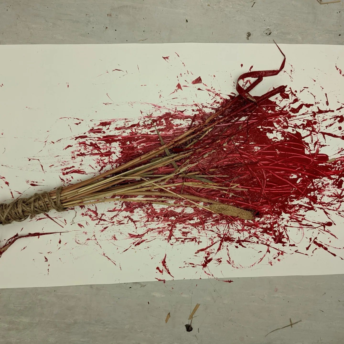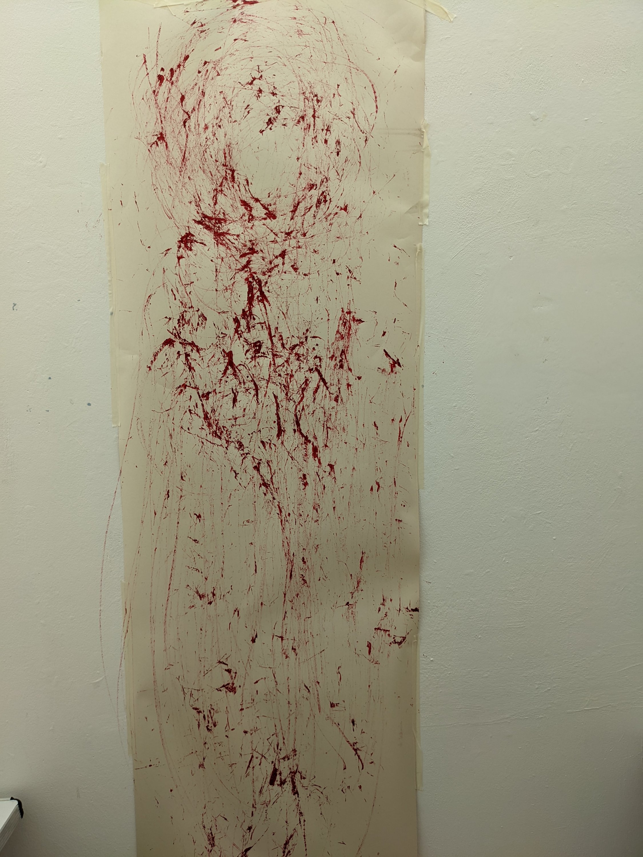 We also talked about how my work would be displayed in an exhibition context and how would the red lady visit?By the touching/moving of these artifacts do we bring her alive?Is she upset by changes in her environment? No matter what decade in which they should occur?Maria also suggested that aswell as having the artificats laid out and the video’s playing what if she enters the room and paints on the wall with the twine/straw.The item is then left aswell as the painting telling part of her story and adding to her own personal narrative and Maria also posed the question how would she of been able to paint herself in the other paintings that i had done.How would she know what she looked like?And that prehaps these paintings were best left as records of what happened by locals adding to the story.
