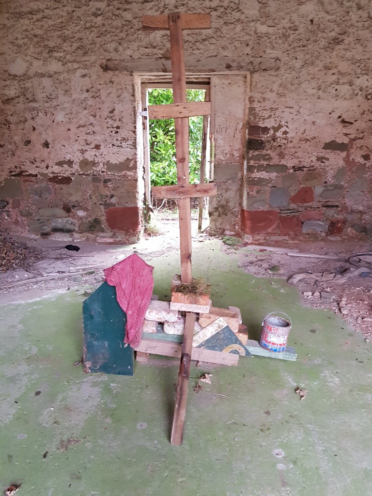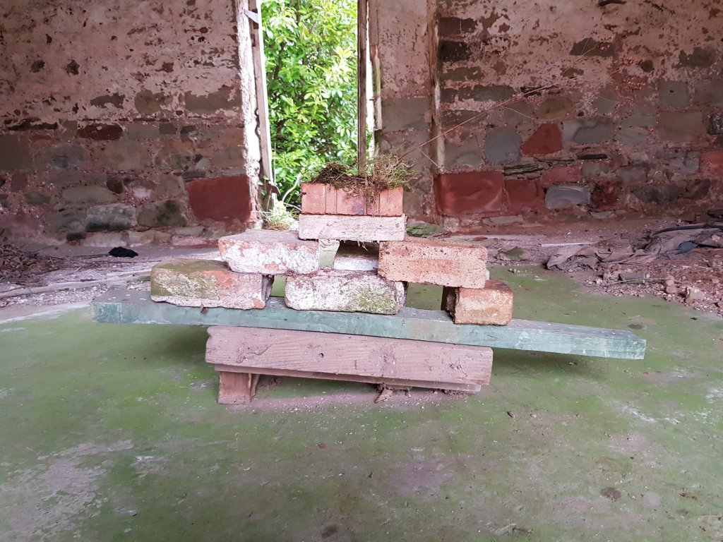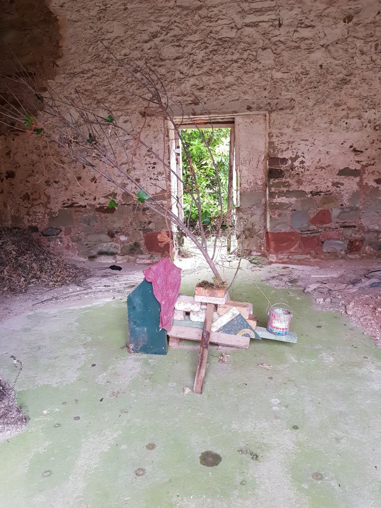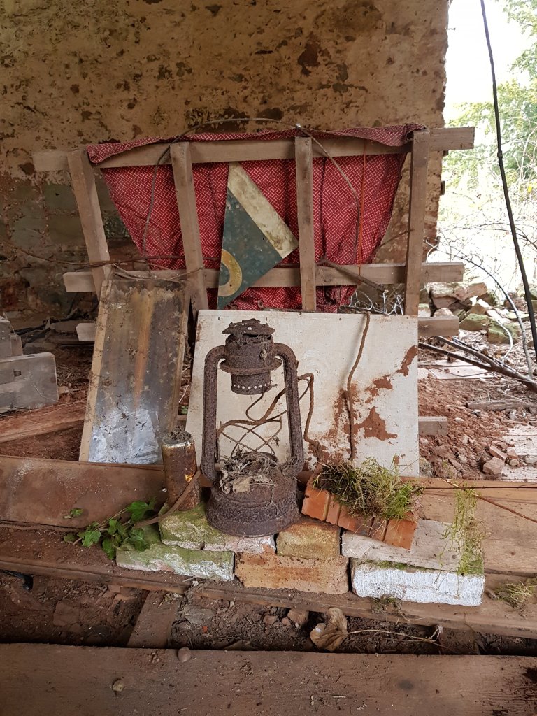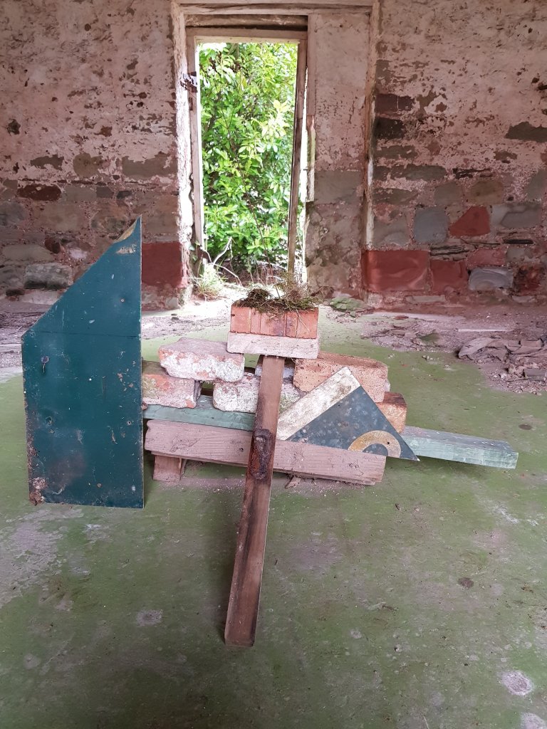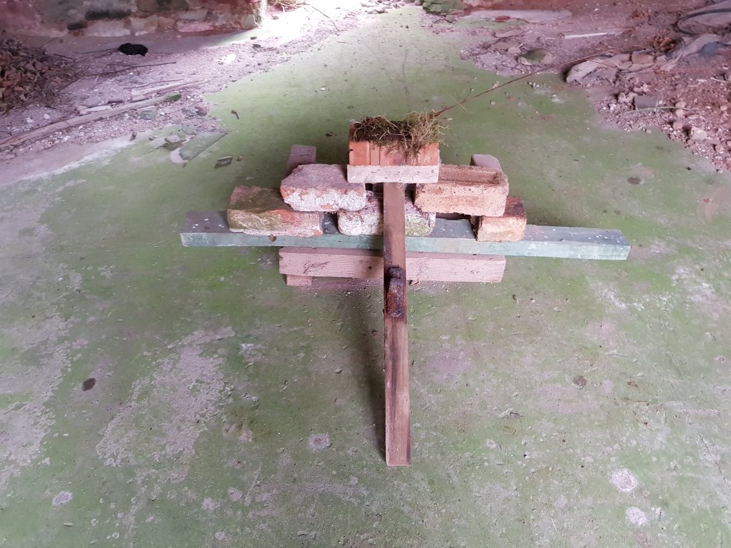 Inspired by Rauschenbergs combine’s I started to experiment with found objects creating installation within the abandoned buildings. The installations started to slowly more and more turn into shrines. Planks of shaped wood perhaps used for structure in one part of the building started to take on a ritualistic shape of its own.
