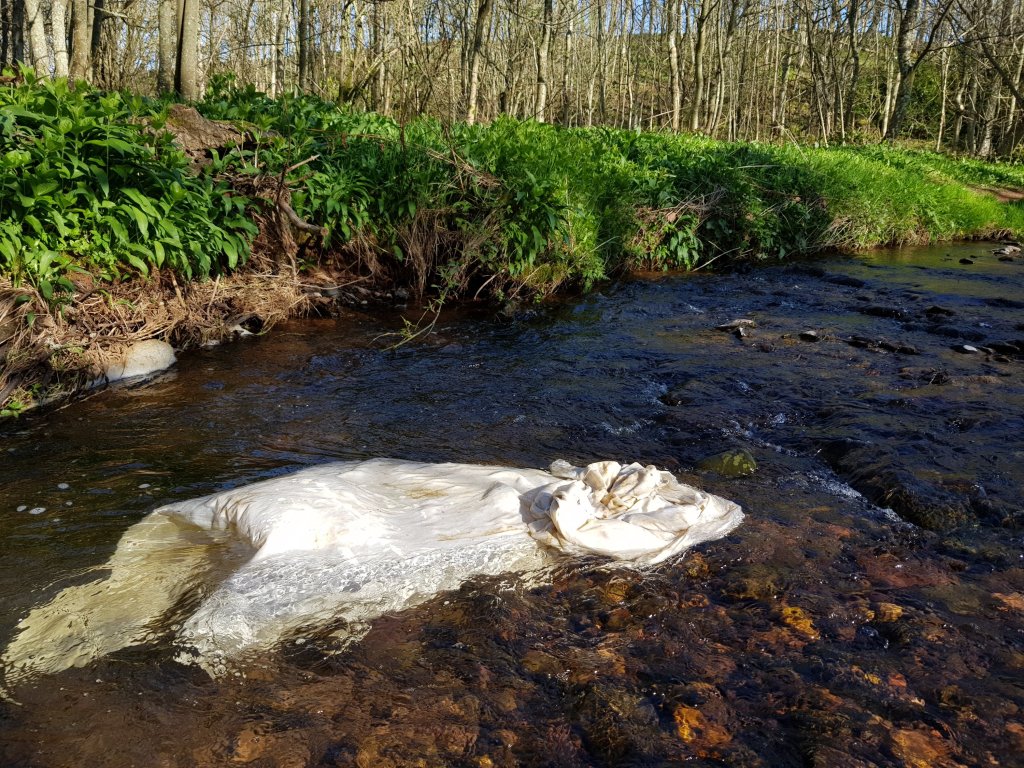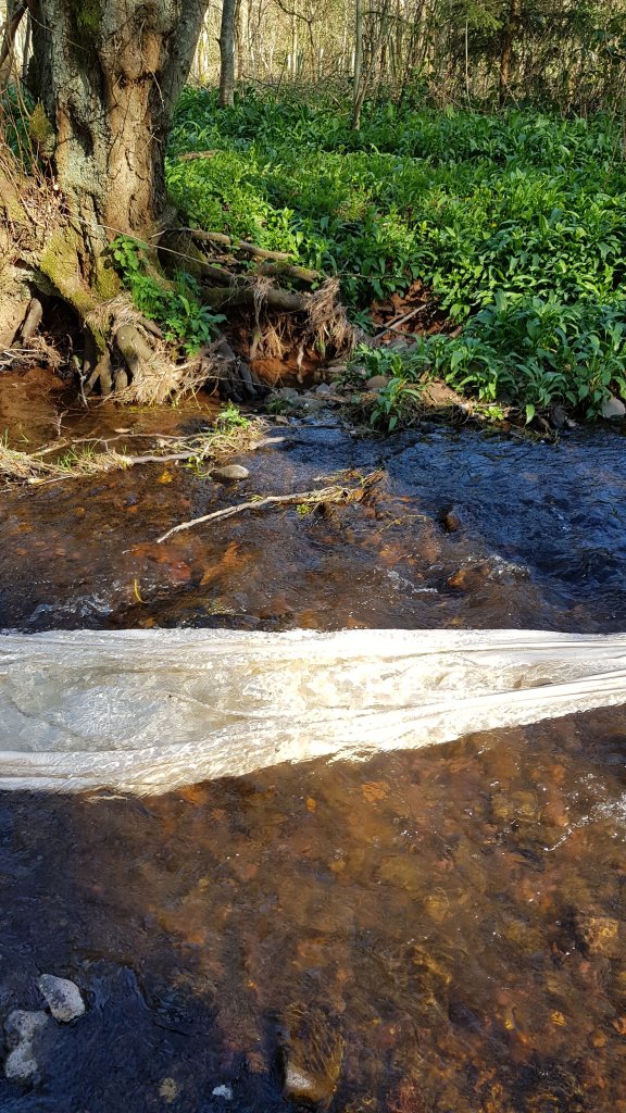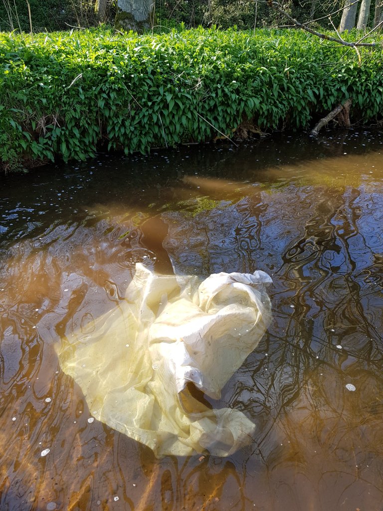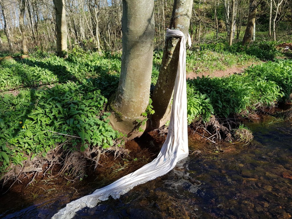 Driven by the sucess of using water with bones and natural items to float I decided to go down a more Ophelia inspired route and use the local river to create movement with a sheet and add flowers and the bones to it as it flowed.