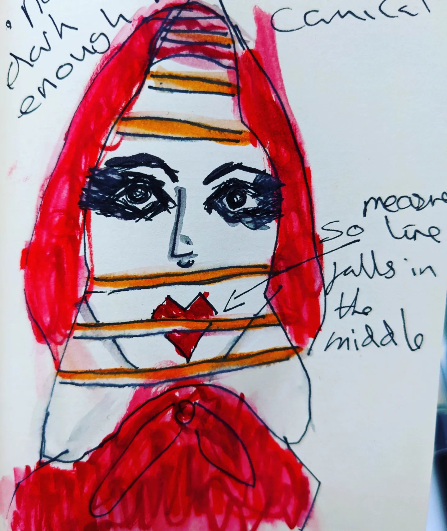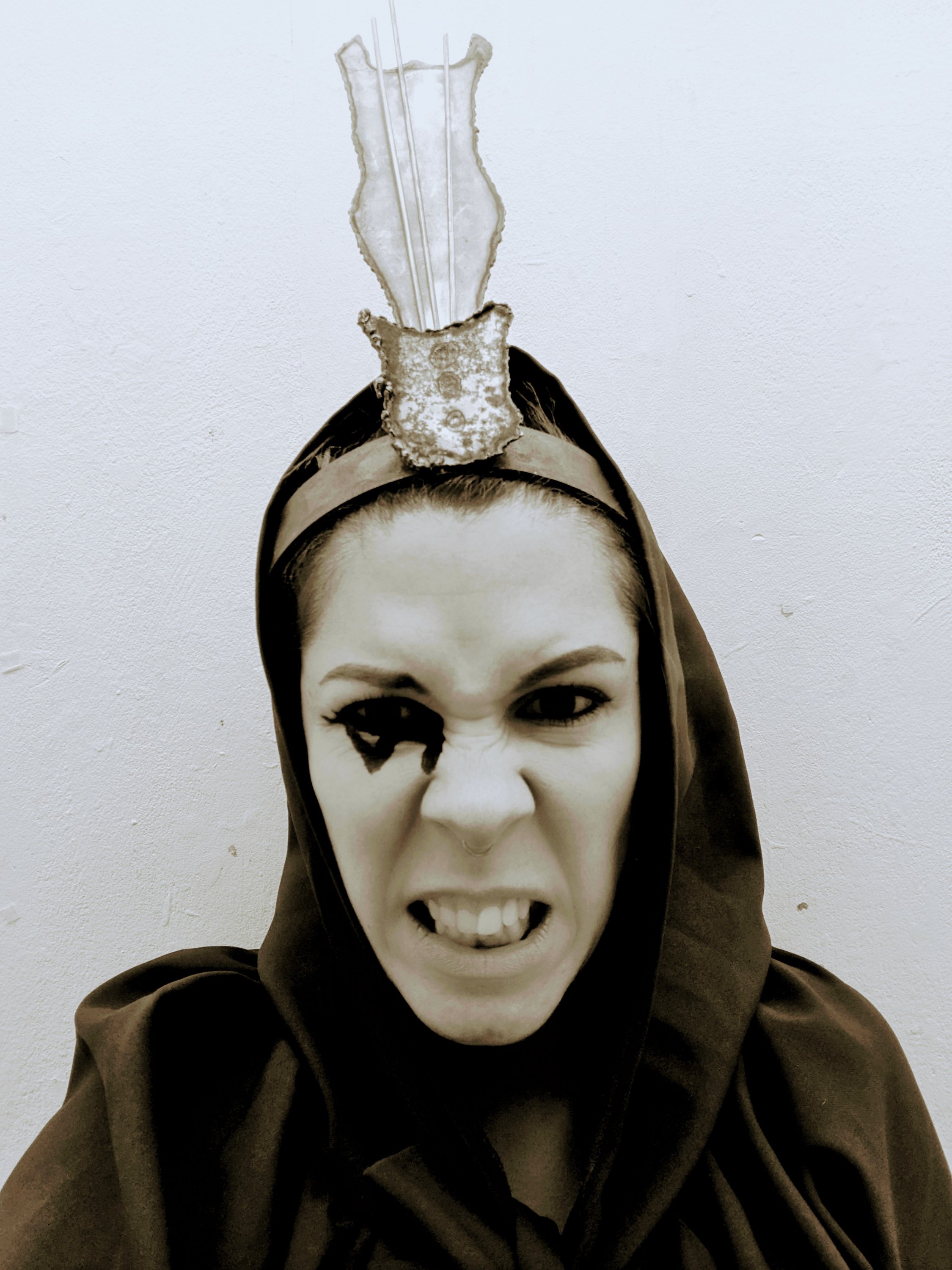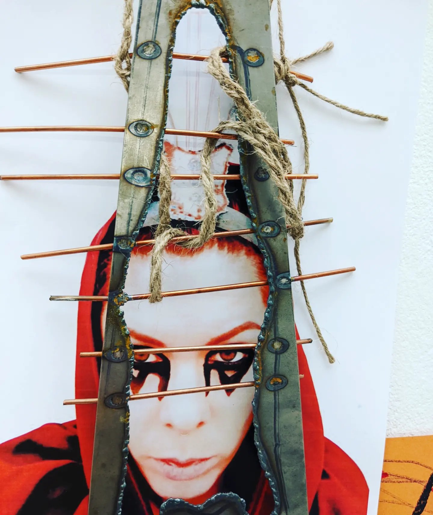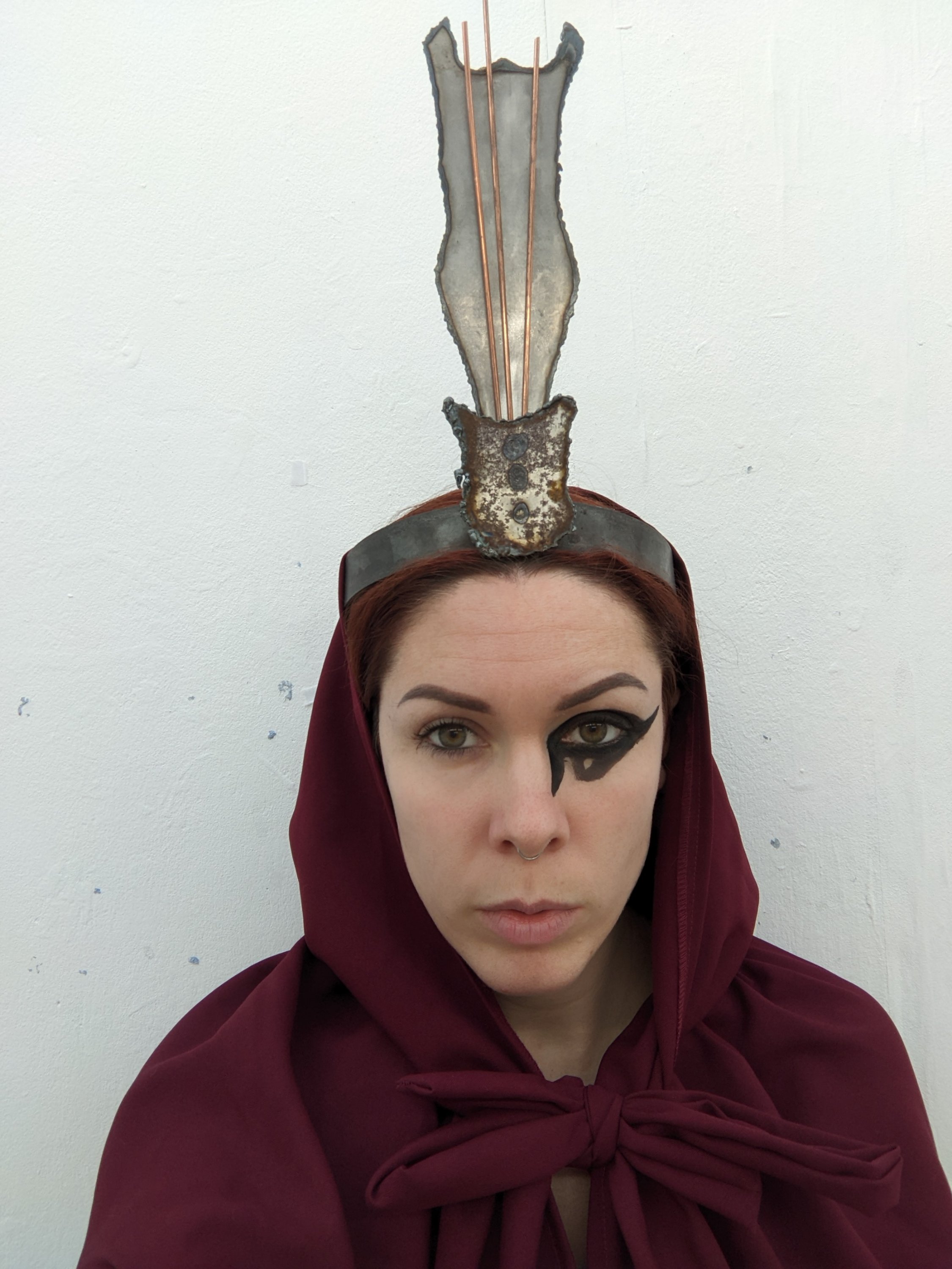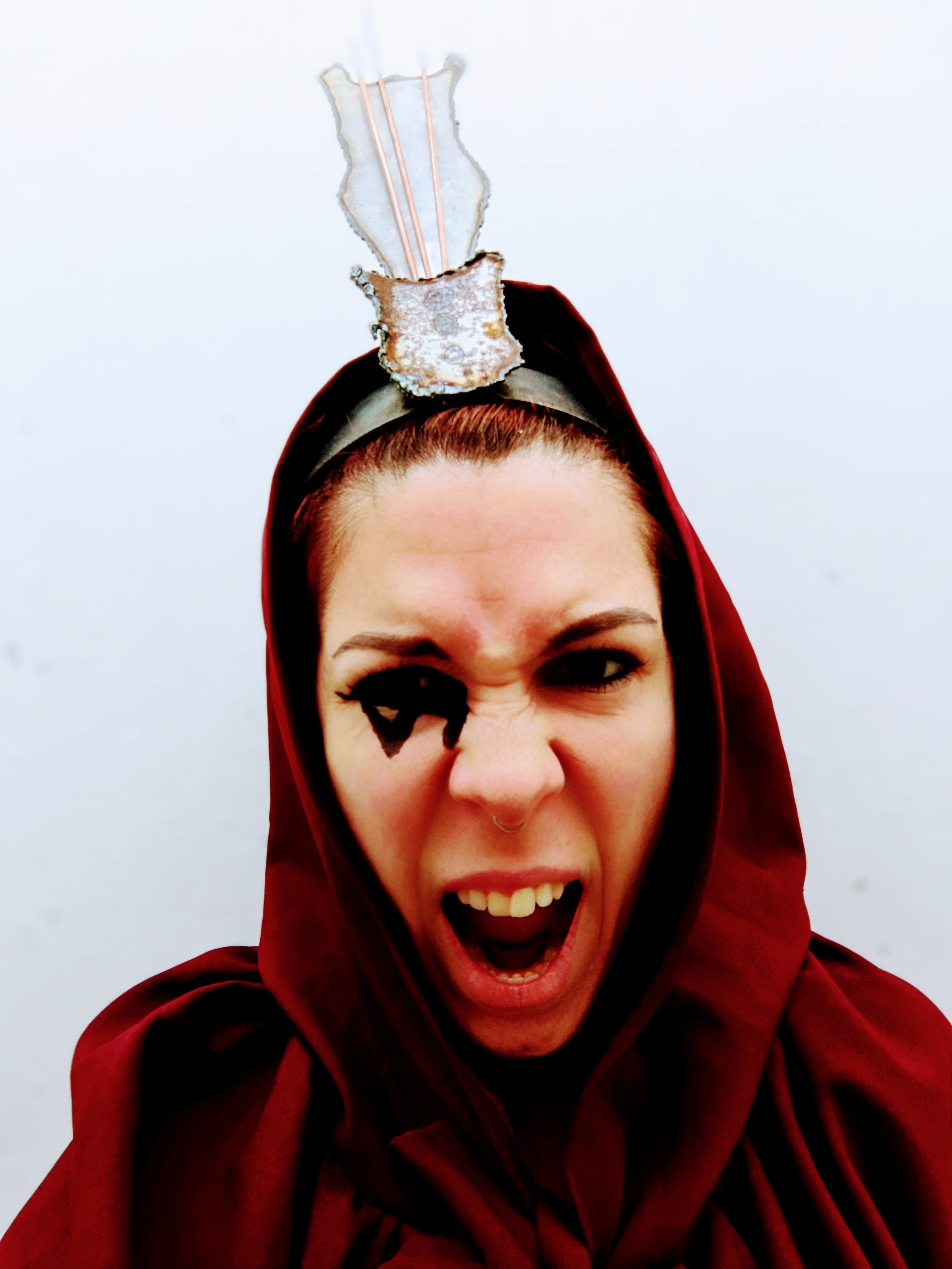 Also the fact that woman are still being painted as ‘witches’ in today’s society should they be too outspoken.So really how much has changed?Particulary in the sense of abortion laws being brought back into states in America by states either goverend by ‘christian’ males or ‘christian’ females but more often then not males. This is why I felt that it is important that the narrative that the red lady is trying to tell is that the past is going to repeat itself in the future if the change doesn’t happen now.I feel like the rust on the items particualary the headcage ties in with these ‘age old’ laws and ways of thinking.And yes,some of the items may look medevil but it is a physical representation of age old laws making a revival.