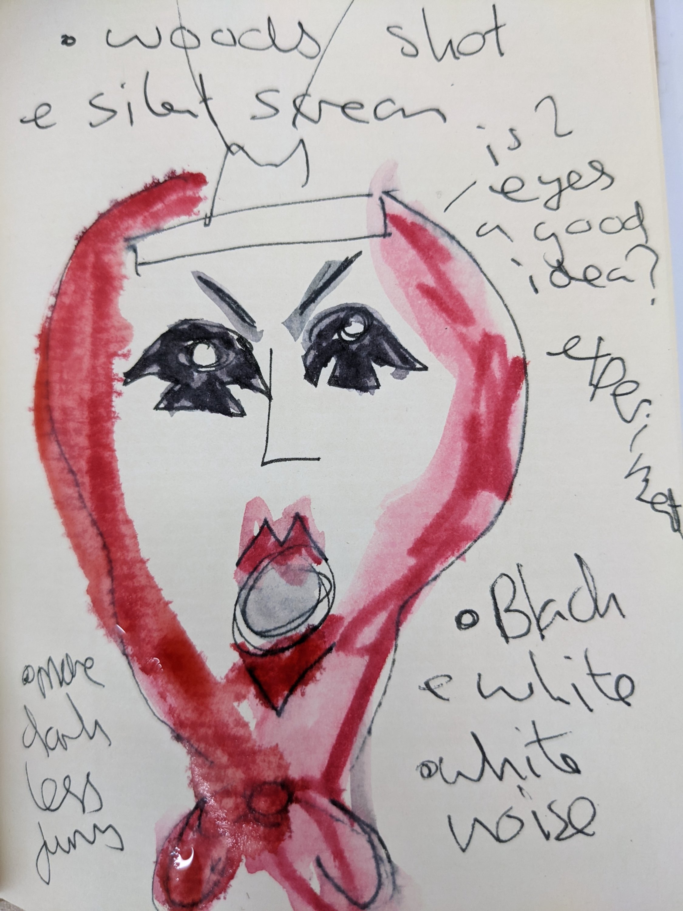 I felt that the reverb of the door slamming went well with the reverb present in the music.I wanted the movement of the red lady painting herself to be almost as if she was praying and moving in a hypnotic motion.