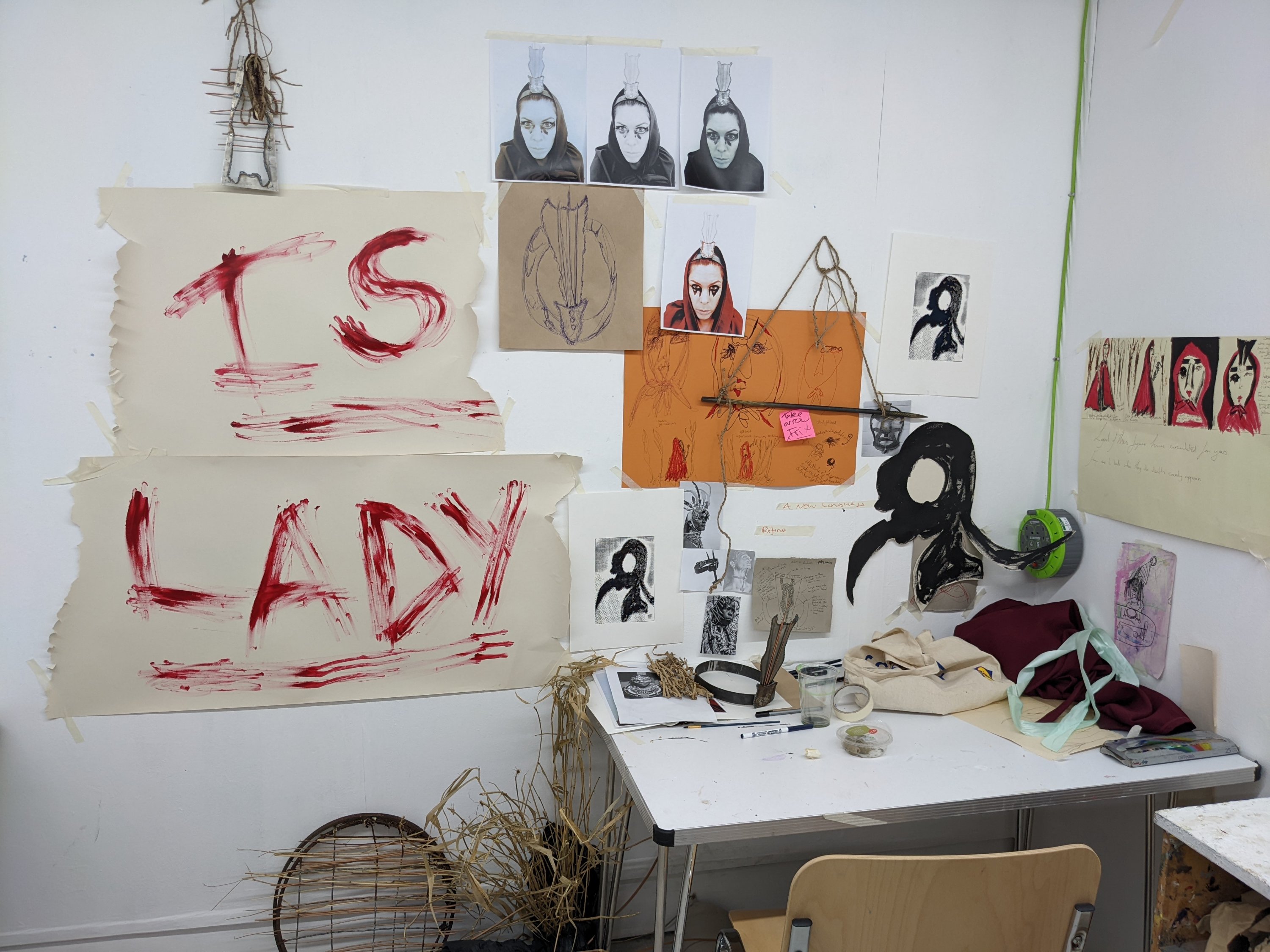 I think I am mostly happy with the resolved display altho I would of liked use of the projectors so that I could of had my video work of the red lady and the flag displayed over it. As this is an important part of my work but I understand that projectors are prioritized to fourth years at this time of the year.I also wish I had more space so that things could be laid out a bit better but hopefully that oppertunity will come in maybe third year and hopefully fourth year. But I feel like all in all I have used all media’s to the best of my ability and tried to pull them all together along with the performative and story-telling aspect.I hope that the audience are able to participate and feel a sense of excitement,thrill,horror but also take into consideration the more serious undertones.
