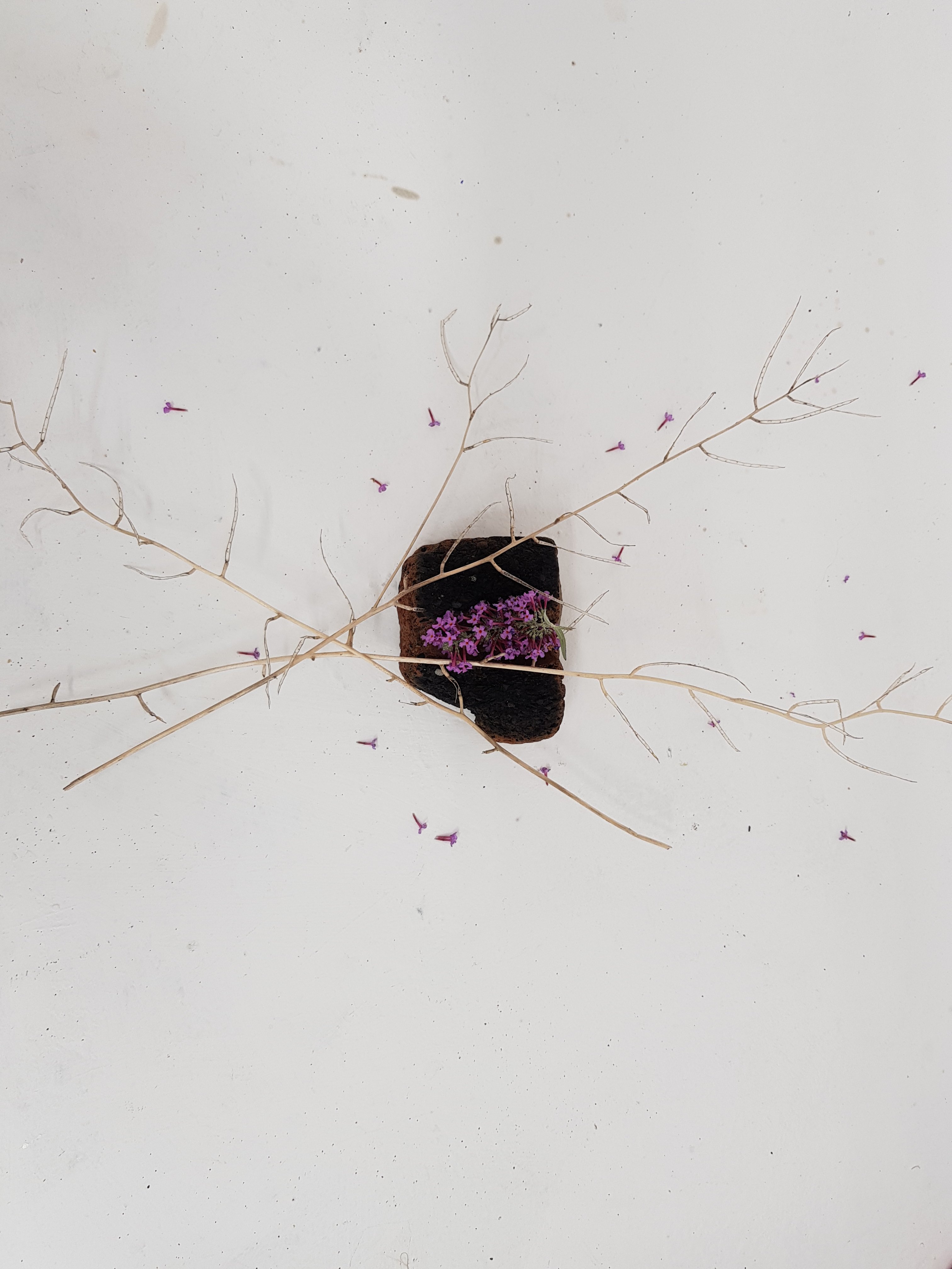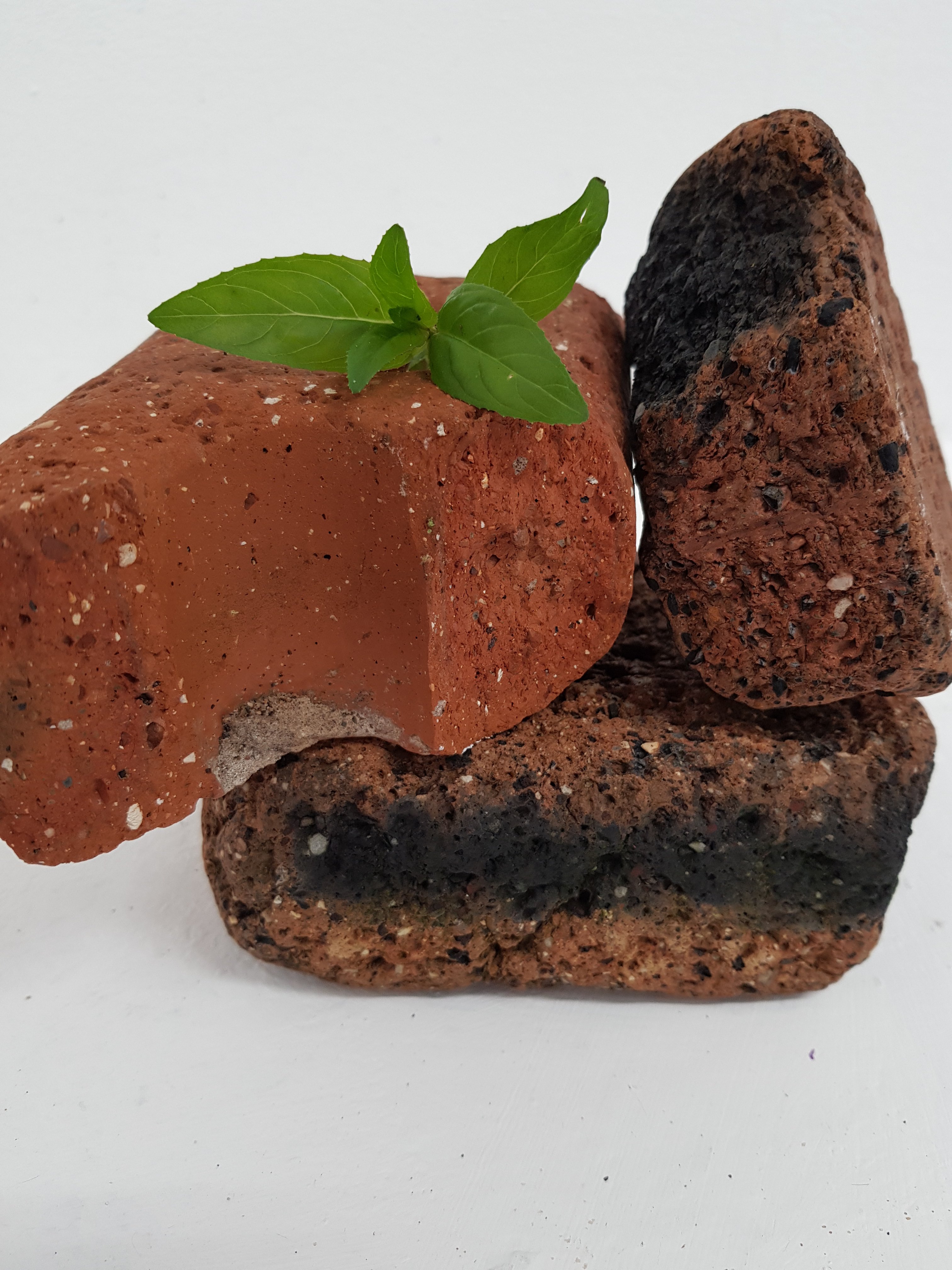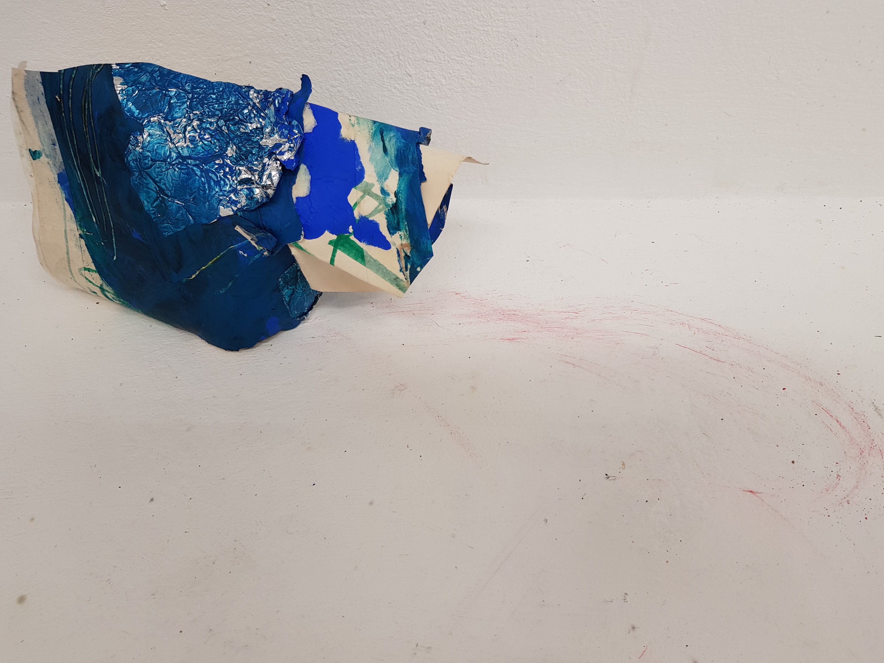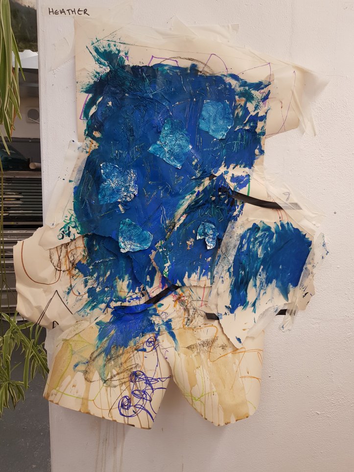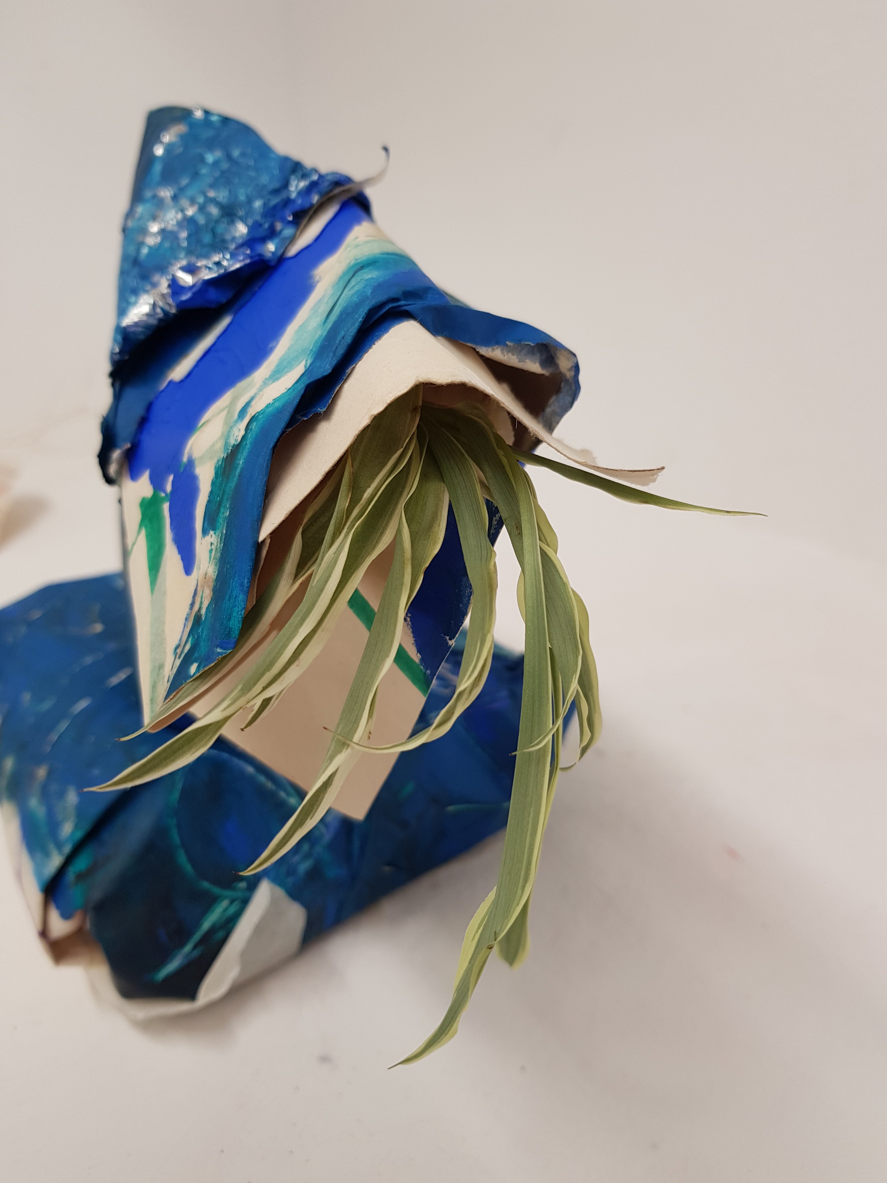 I decided to wrap the bricks that i had found in the mixed media painting which had been used previously.I soon found that the parcels started to take on a different form,one looking organic and the other started to become creature/alien like.This is not what I was initally expecting would happen.Placing organic objects in and around the parcels really created quite a nice contrast which i found to be sucessful.
