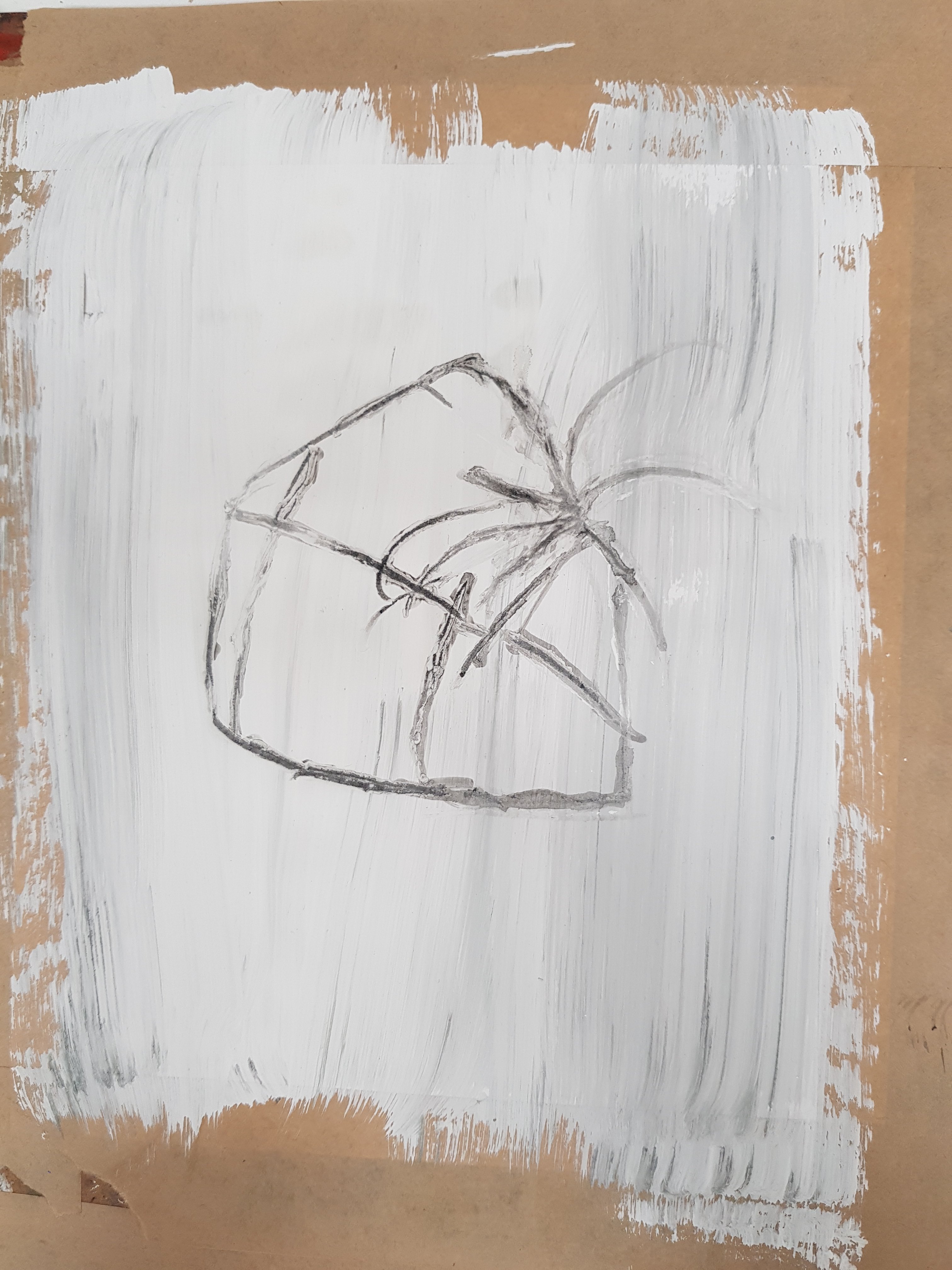 Today i experimented further with mixed media,I questioned things such as what is a home?I also thought about the control and power a landlord/council have to be able to make someone leave somewhere they consider home all of a sudden and the feeling that comes with that which i displayed using an array of blues/blacks and browns and seeping black ink into tissue/masking tape to show how mental illness slowly takes over.I aso used the image of a tent wich i first discovered from a newspaper article during the day today project in the first week along with drawing the imageof one if the parcels i made in week two which represents people being sent away.I also think more care is taken of parcels then human beings.