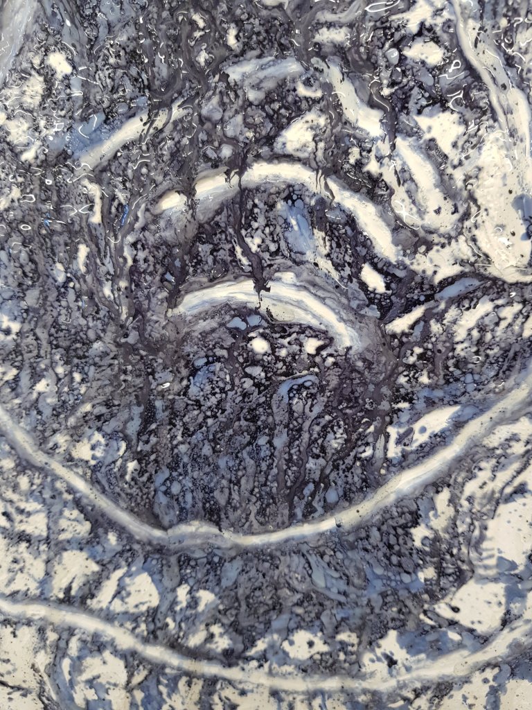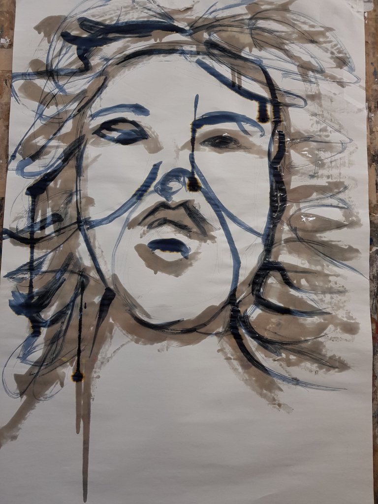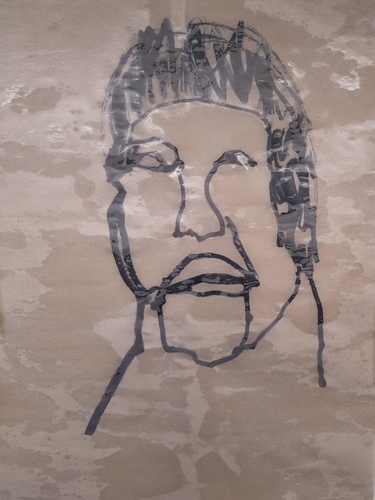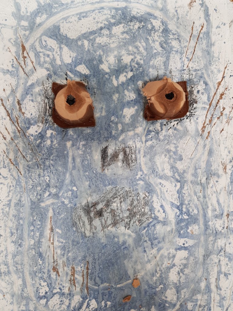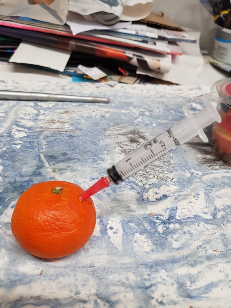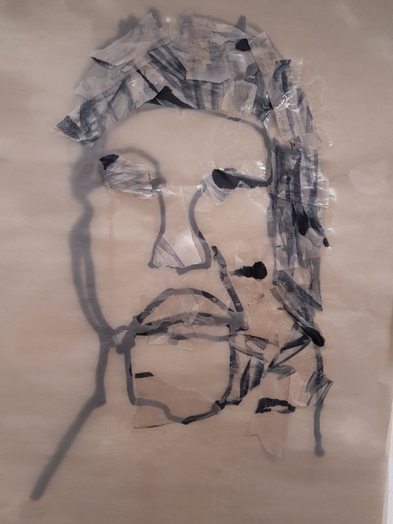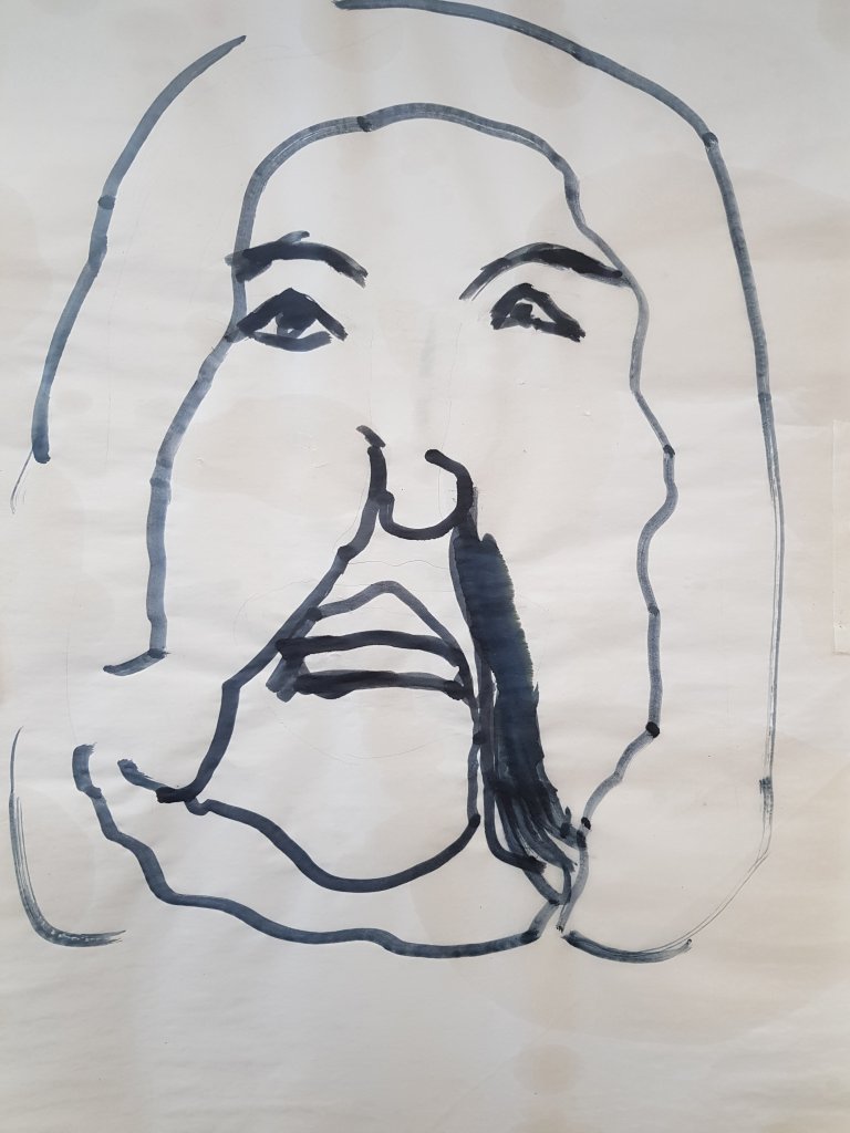 I decided to use layers of emulsion then cooking oil and ink to build up a painting which was originally of Hang Mioku.I liked the way the oil ran with the ink and the consistancy of it.I then decided to deconstruct using a chisel which is an instrument shaped similar to an osteotome use in nose surgery.I then thought of the phrase ‘your eyes are bigger then your belly’ in terms of plastic surgery.The want and need for more and more.So I used egg cartons to suggest this then poured oil into them untill it over flowed (see video).I think i like this piece at certain stages but not at others.Particualy the abstract ink/oil stage and when i had freshly scratched into it.I wonder if this is the same feeling people have at particular stages in surgery?I also can’t say that i feel a strong like or dislike towards this piece which i am still trying to figure out why