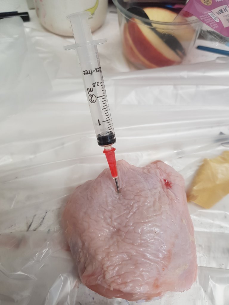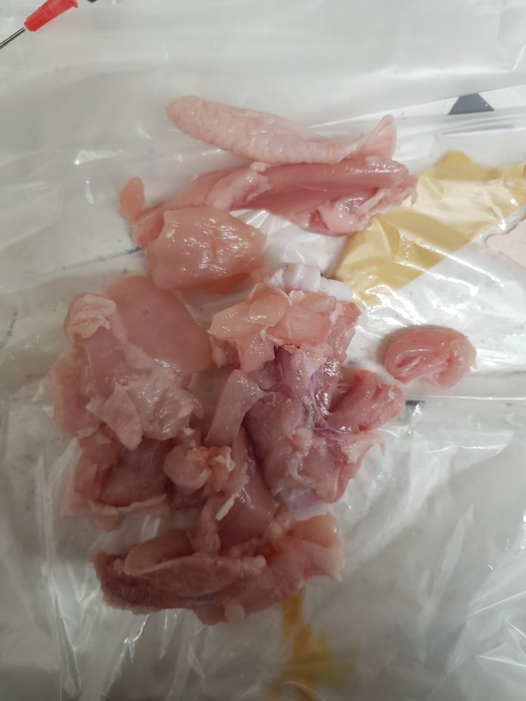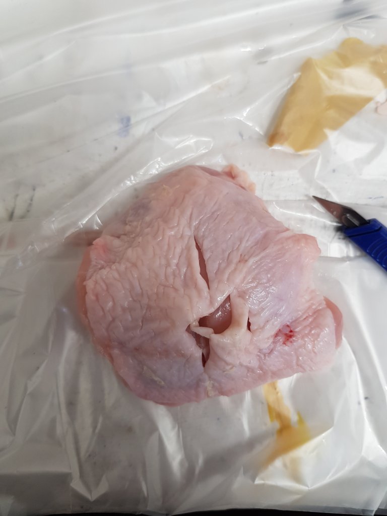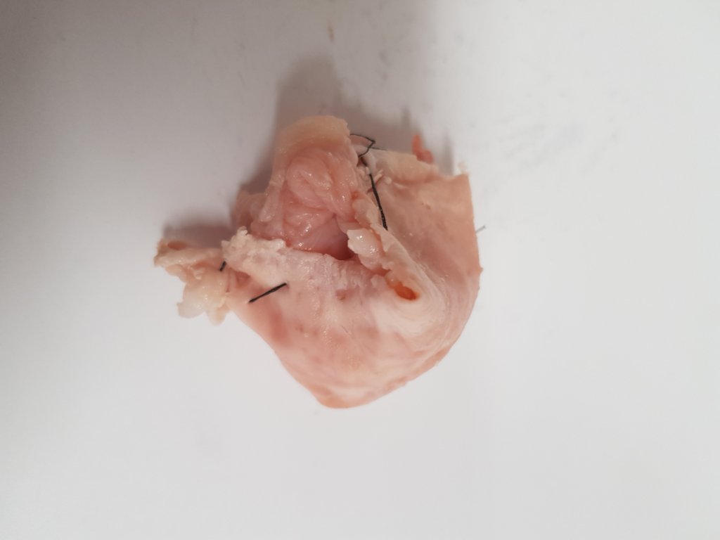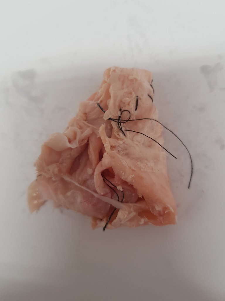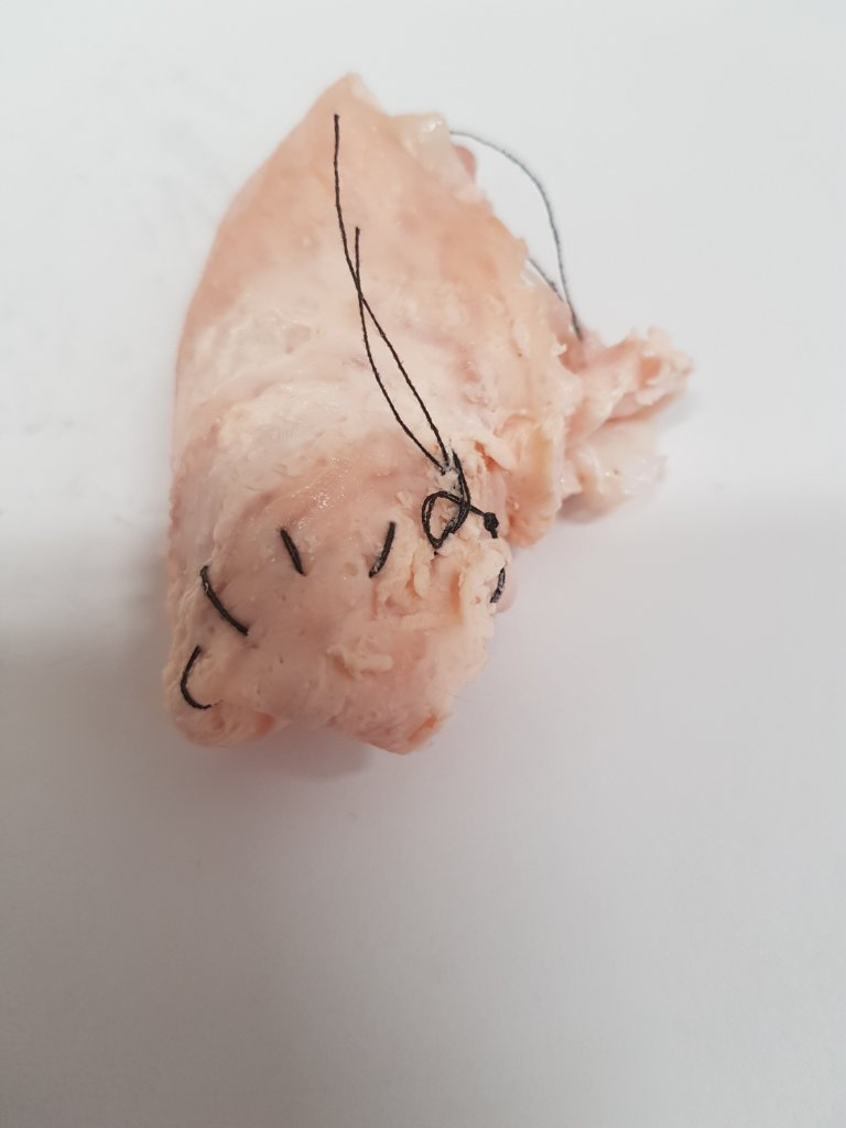 The deconstruction and reconstruction of the chicken piece.I wanted to show how once flesh is operated on it will never look the same again whether this be in a bad or a good way.I want people to be disgusted by the piece which seems to of been the effect that has happened around the class.