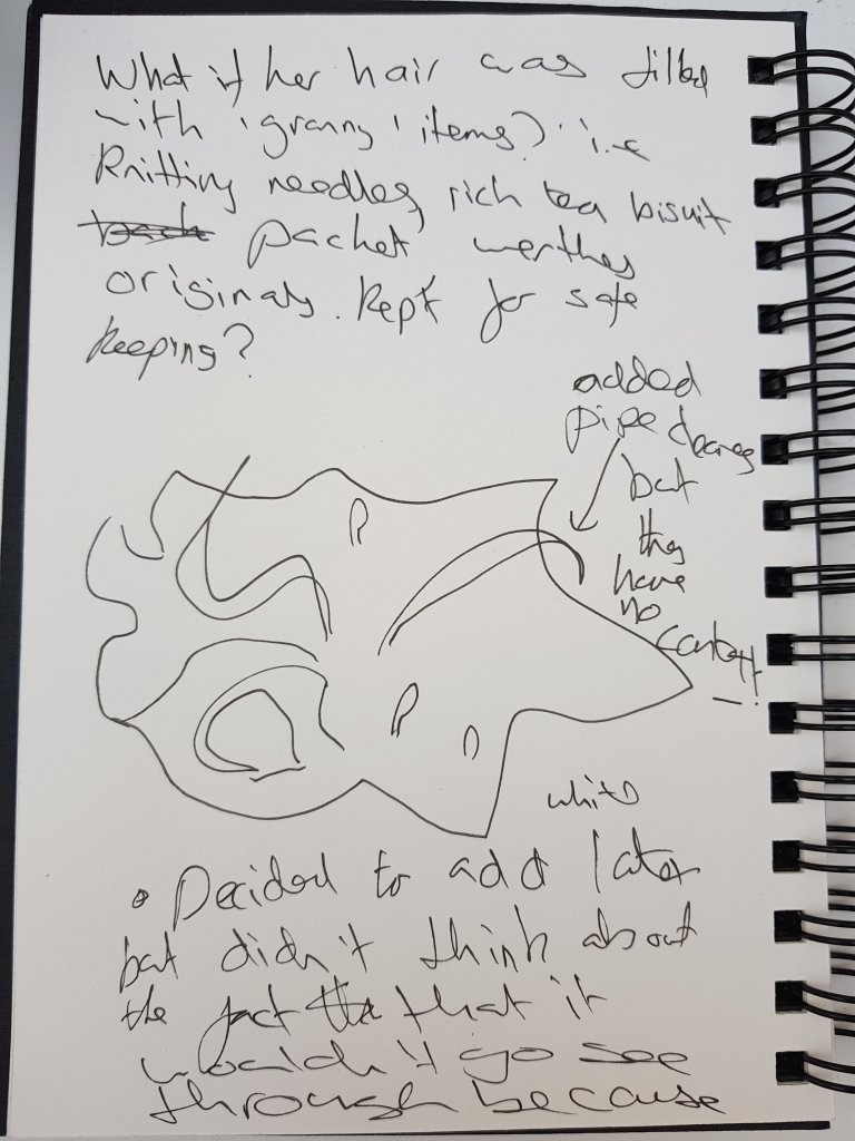 Also inspired by some characters I saw whilst watching Borat 2 and Frank I would like to create her a paper mache head with 3D eyes. I plan to work on these ideas in my reflective sketchbook over the holidays then start making at the start of the new semester.